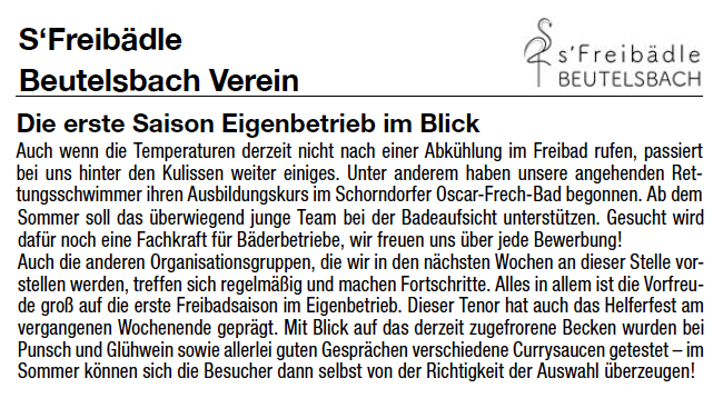 Kontoinhaber: s'Freibädle Beutelsbach e.V.