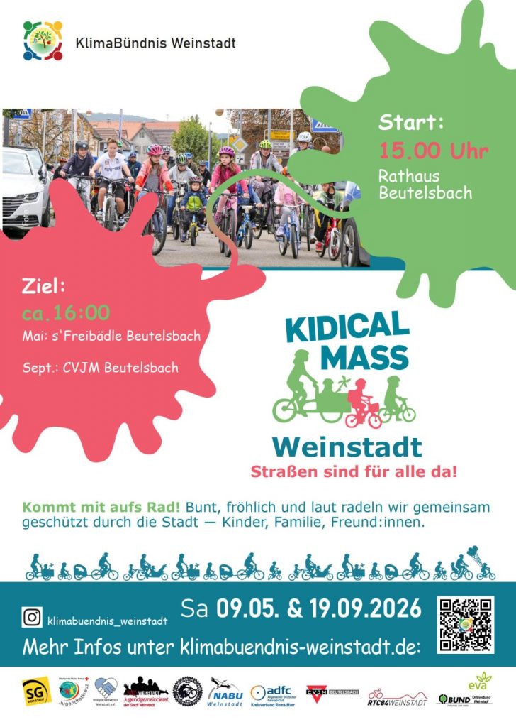 Um ca. 16 Uhr endet die KlimaBündnis Weinstadt-Aktion KIDICAL MASS Weinstadt am Freibädle.