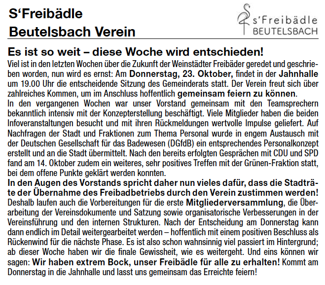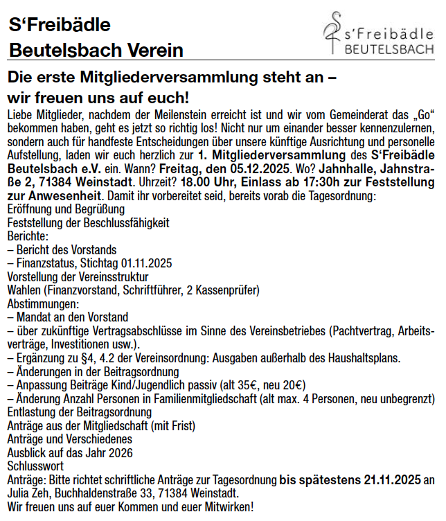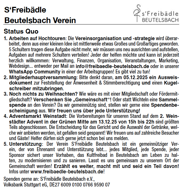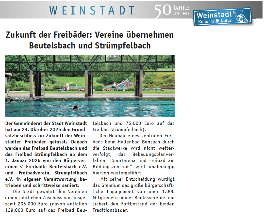 Meldung der Stadt Weinstadt KW44 2025 29. Oktober 2025 – © ’sBlättle