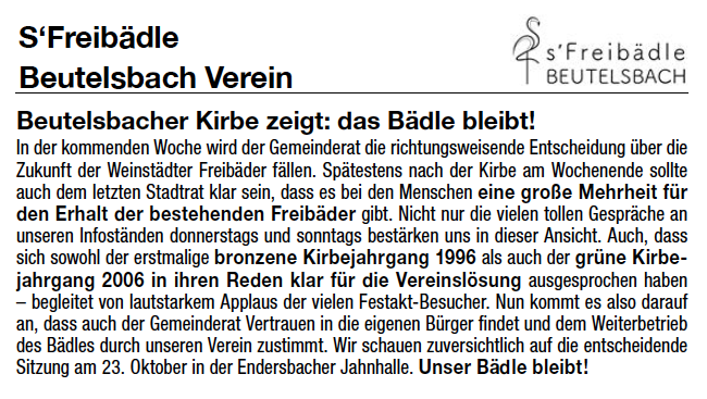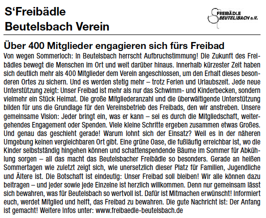Hier erscheinen Pressemeldungen zum Verein – in chronologischer Reihenfolge. Vielen Dank an die Redaktionen!