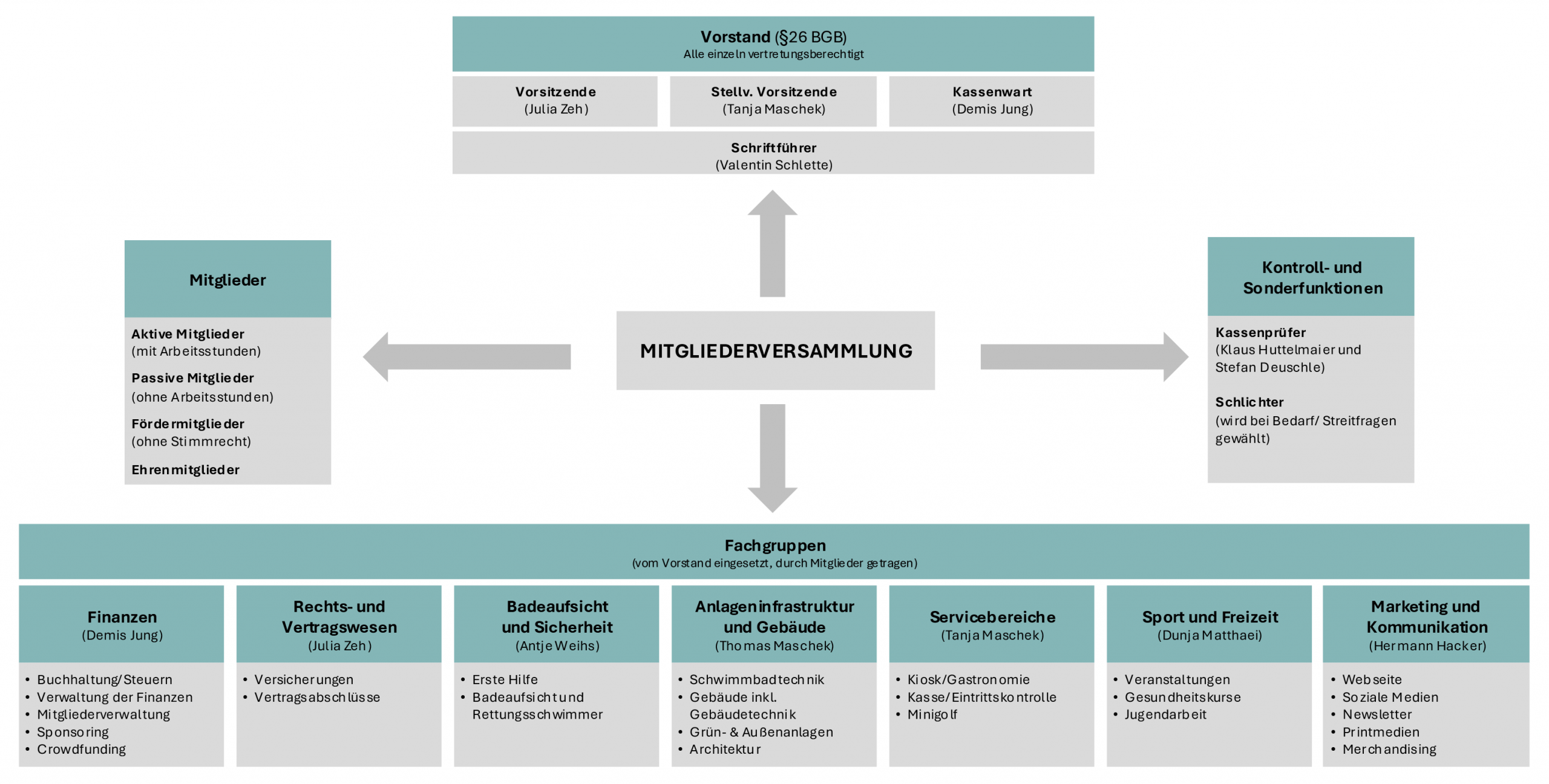 Wir haben nach vielen Gesprächen und Abstimmungen, nachfolgende Vereinsstruktur festgelegt. Im nachfolgenden Organigramm ist unsere Vereinsstruktur dargestellt. (Klickt bitte auf das Bild für eine vergrößerte Ansicht)